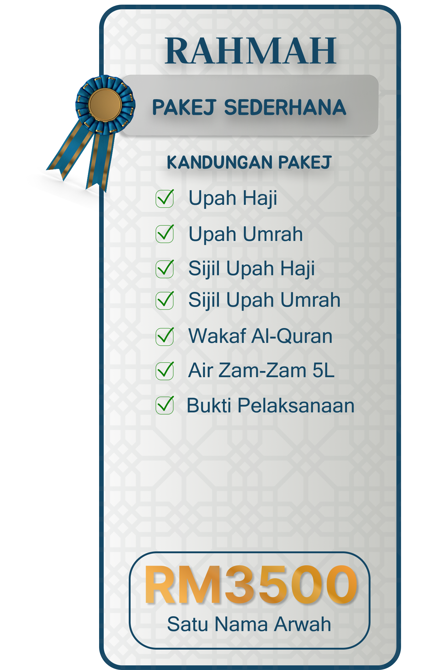 Kami menyediakan perkhidmatan Upah Haji buat insan yang tiada harapan untuk sembuh daripada sakit ataupun telah meninggal dunia sebelum dapat menunaikan haji walaupun sekali seumur hidupnya.
